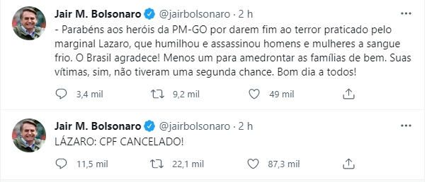 A narrativa oficial e midiática em torno da caça também é um aspecto importante. A busca por um bandido sanguinário inflama a imaginação coletiva e alimenta o populismo político em torno da segurança pública. Não à toa, a perseguição a Lázaro mobilizou parlamentares, governadores e até mesmo o presidente da República, que comemorou um feito com a macabra expressão “CPF cancelado”.