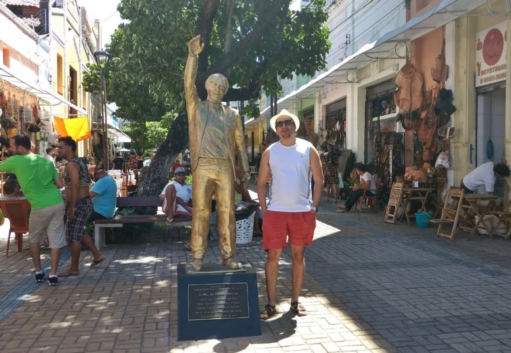 “Centro – lugar de lembranças, esquecimentos e de efemeridades. Daquilo que dura pouco tempo. Cadê tu, Brizola? Entre a inauguração, a reinauguração e o sumiço foram pouco mais que dois anos! A estátua do político gaúcho Leonel de Moura Brizola (1922 – 2004) foi inaugurada em 22 de junho de 2016. O político foi fundador do PDT, atual partido do prefeito José Sarto Nogueira e dos Ferreiras Gomes.