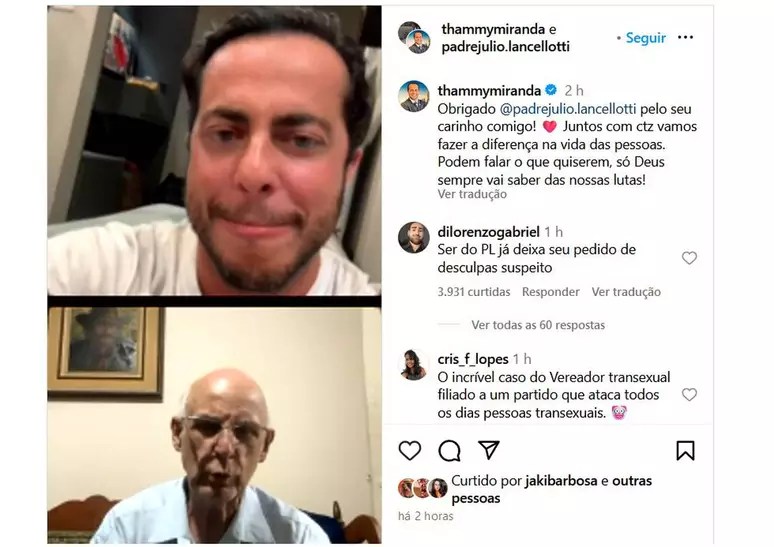 Um dos apoios mais curiosos, no entanto, veio de quem assinou o pedido de CPI. Thammy Miranda, homem trans, filho da cantora Gretchen, e vereador pelo Partido Liberal de São Paulo, afirmou que que não sabia que Padre Júlio seria alvo ao assinar o pedido de instauração da CPI na Câmara paulistana.