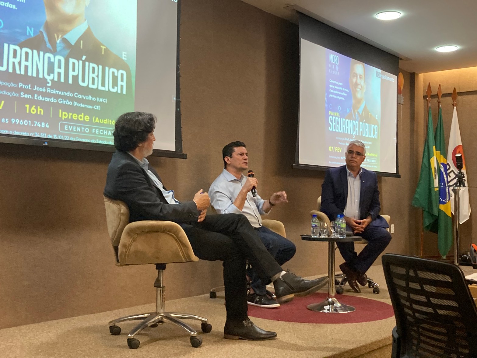 Embora tenha permanecido pouco tempo à frente do Ministério da Segurança Pública, Sergio Moro teve de lidar com dois momentos-chave da história recente do Ceará. O primeiro deles foram os ataques das facções ocorridos em janeiro de 2019. “O problema dos atentados foi muito grave. A gente não hesitou nem por um minuto. Formamos, desde o início, um gabinete de crise no Ministério para fazer o planejamento necessário para atender o Estado antes ainda que o presidente nos desse o sinal verde para tomar essa decisão. Mandamos Força Nacional, criamos uma força de intervenção penitenciária e transferimos as lideranças criminosas do Ceará para presídios federais”, enumera. O presidenciável atribuiu ainda a queda dos homicídios no Ceará naquele ano à sua atuação à frente do Ministério da Segurança Pública, em especial no processo de reordenamento do sistema penitenciário, foco da insatisfação dos grupos criminosos à frente dos ataques: “Negar a atuação do Ministério da Segurança Pública na queda dos homicídios em 2019 é um argumento falacioso”, disse.