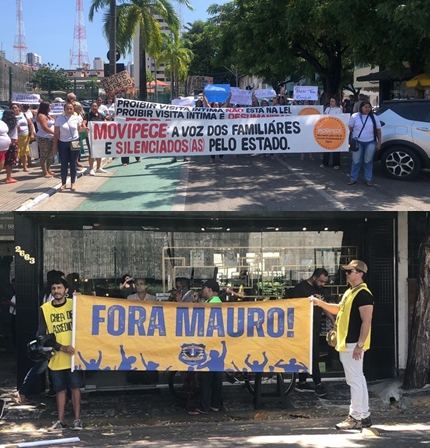 Policiais penais e familiares de presos cobram saída de secretário da Administração Penitenciária. Parentes dos detentos afirmam, contudo, que, embora tenha sido realizada simultaneamente, a manifestação não sinaliza uma união entre ambos os grupos, uma vez que, segundo eles, “não dá pra ficar ao lado de quem agrediu familiar”