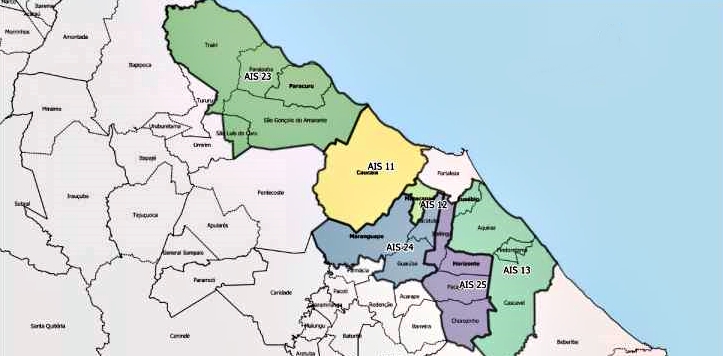 A Secretaria da Segurança Pública e Defesa Social (SSPDS) alterou o desenho territorial das Áreas Integradas de Segurança (AIS) pela segunda vez. As mudanças se concentraram na Região Metropolitana de Fortaleza (RMF). As cidades que pertenciam às AIS 11, 12 e 13 foram desmembradas e realocadas em outras áreas a partir da criação de três novas áreas (AIS 23, 24 e 25). Os municípios de Caucaia e Maracanaú passam a ser abrangidos, cada um, por uma única Área Integrada de Segurança, a AIS 11 e a AIS 12, respectivamente.